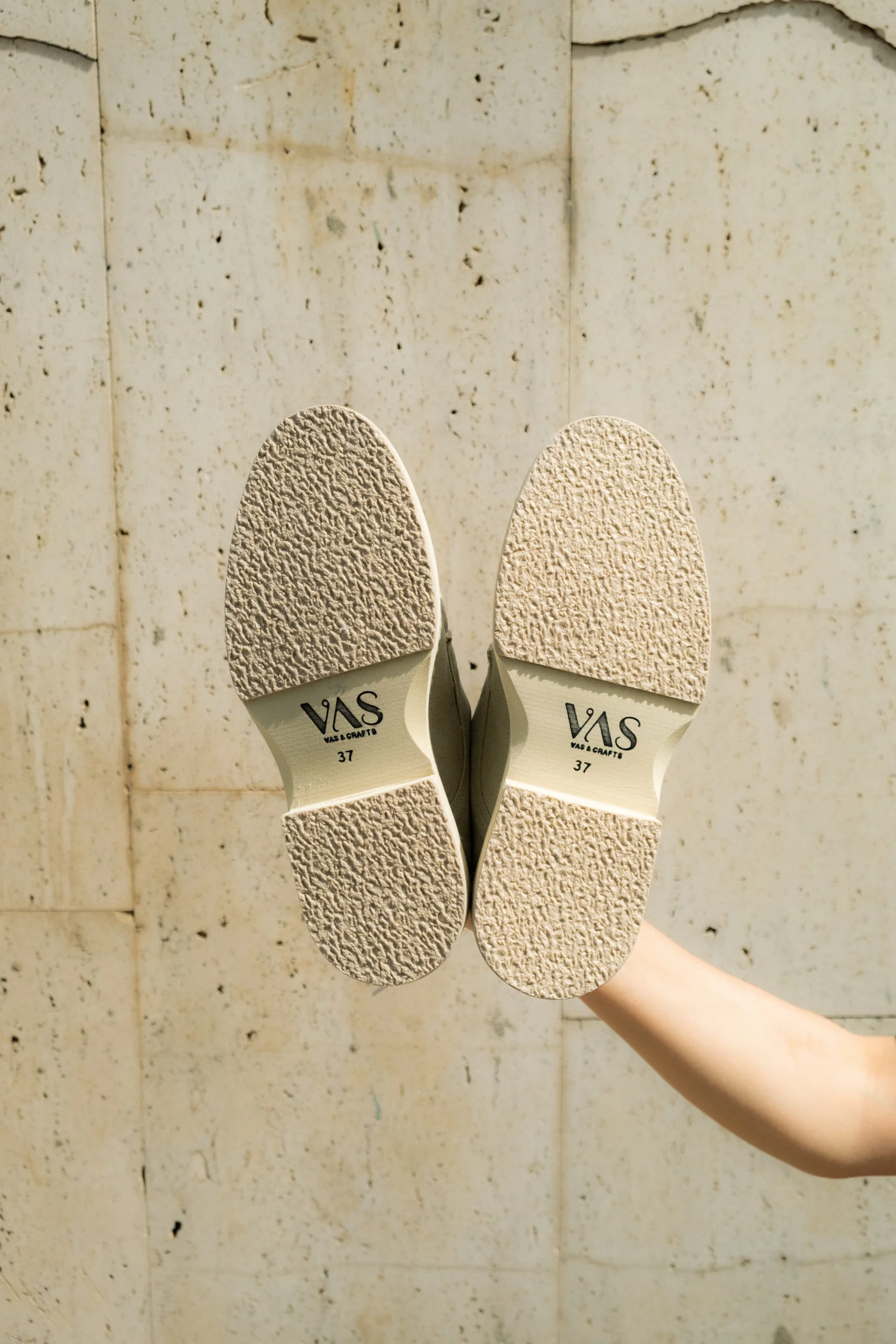 Rounded toes detailed with contrast & rough hand stitching.